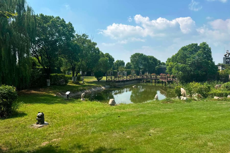 环境特色:三面环水,地势负阴抱阳,景观营造精致。缓坡起伏,水流回转,树木繁盛,花草斑斓,四季风光各异,朝夕景色有变,展现了江南的绮丽之美。